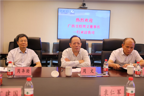 5月25日,广西交通投资集团董事长周文一行来我司考察交流,公司董事长袁仁军、副董事长丁建国、副总经理魏勇及相关职能部门责任人热情接待。