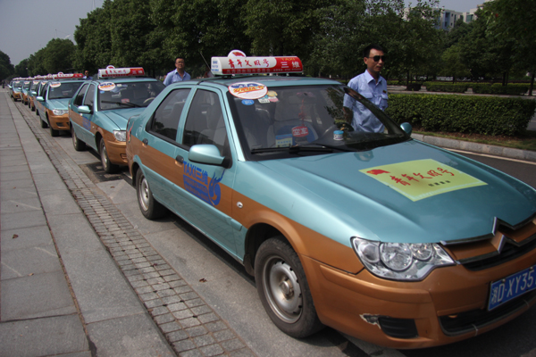 ??? 6月5日,“传递正能量 弘扬新风尚”爱心送考活动在衡阳市船山广场启动,仪式现场,衡阳三维出租车队10多辆“爱心送考车”驾驶员将红色飘带系在车上,在车身的醒目位置贴上“爱心送考”标志。他们将尽最大努力,为高考学子保驾护航,展现“三维人”的爱心和责任。