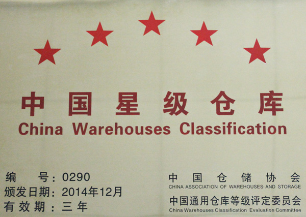 ??? 2014年中国仓储协会会员交流与合作年会于12月4日在福建厦门召开。会上,高星物流园仓储中心被授予“中国五星级仓库”荣誉称号,标志着高星物流园仓储设施及服务水平达到了国家级质量建设标准。