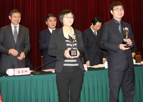 “银奖”获得者钢铁四部责任人胡冰(右一)在领奖