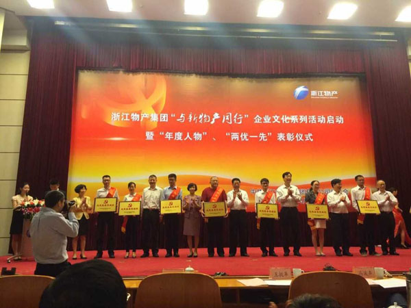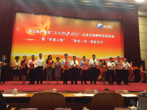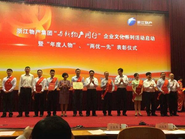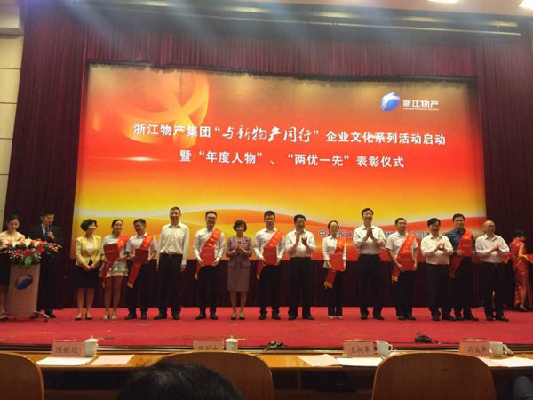 ??????? 6月28日上午,在浙江省物产集团有限公司党委举办的“与新物产同行”企业文化系列活动启动暨“年度人物”、“两优一先”表彰仪式上,我公司潘轶杰、戴彦辉、张良、李小波、陈时英、蒋福山、吴丹、颜峰阳等8位同志荣获浙江物产集团“优秀共产党员”荣誉称号;李熙、杨慧娟2位同志获得了集团“优秀党务工作者”荣誉称号;总部第一支部、杭州联合支部、三维企业党委和湘南物流公司党委4个基层组织获得了集团“先进基层党组织”荣誉称号。