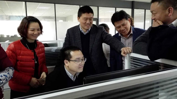 (图为金海辉煌员工向我司人员演示ERP软件的功能)