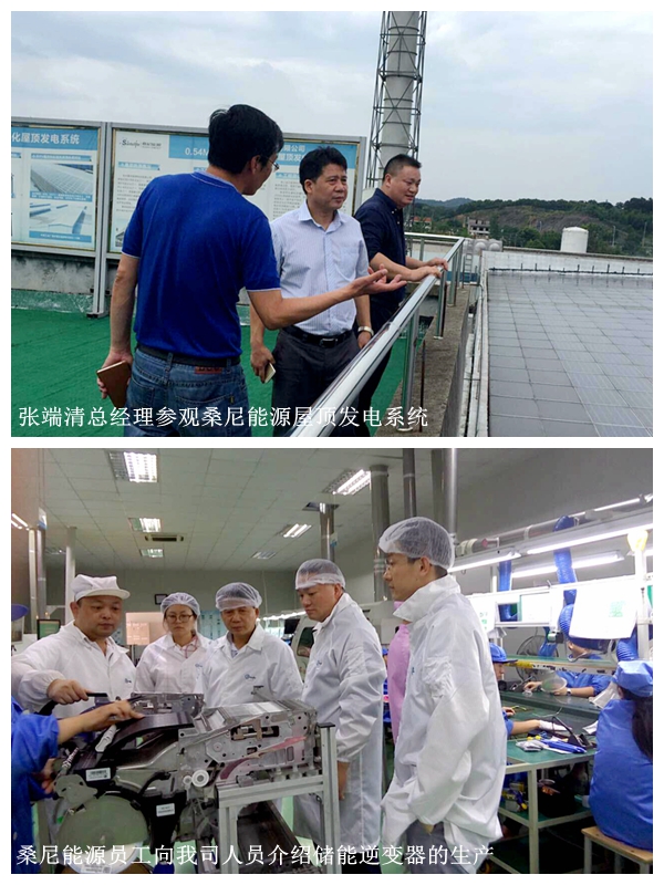 ??? 张端清总经理一行参观了桑尼能源生产基地、光伏建筑一体化屋顶发电系统项目,并对其拳头产品储能逆变器的生产流程进行了现场考察。随后双方就jn江南·体育登录入口融资租赁为桑尼能源提供供应链金融服务进行了广泛深入地交流和磋商。会议中,张端清总经理与李新富董事长对桑尼能源目前的经营情况及未来发展规划进行了深入交流,并就供应链金融合作进行了探讨。